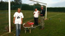 Ce matin à Prunet, travaux pour réguler la hauteur des buts et plaquer du gazon devant les buts vers le portail où beaucoup de jeunes vont souvent jouer sans malheureusement adhérer au club. 4 dirigeants ont passé une large matinée , Jean-Vincent, Geneviève, Roger et Vincent. (voir 4 photos)