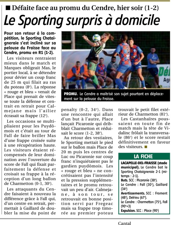 La Montagne du 13 septembre 2020 (SCC / LE CENDRE)